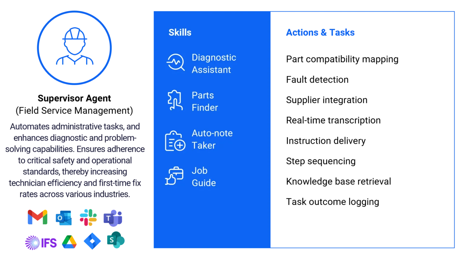 The agents are purpose-built for mission-critical operations and trained on manufacturing, field service, utilities, and telecommunications data. They adhere to customer-defined security, data access, and compliance standards.