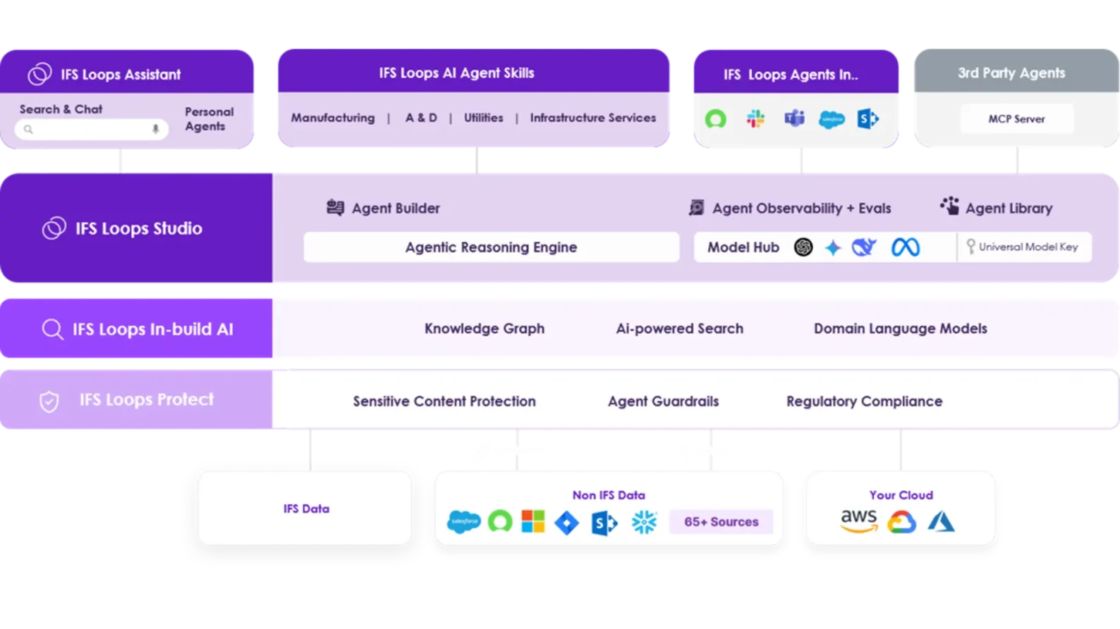 - IFS Loops Protect: Ensures security by providing sensitive content protection, regulatory compliance, and agent guardrails. This ensures safety and full auditability.