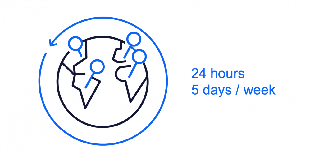 Our Team is located in our offices around the world, so we can be really close to our customers when they need it, and provide cost-effective offshore support whenever it is possible.