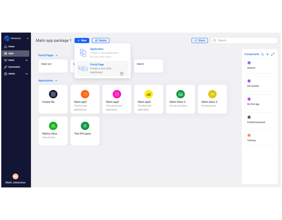 With Novacura Flow Connect, we introduce “Components” - application fragments that can be reused across multiple applications.